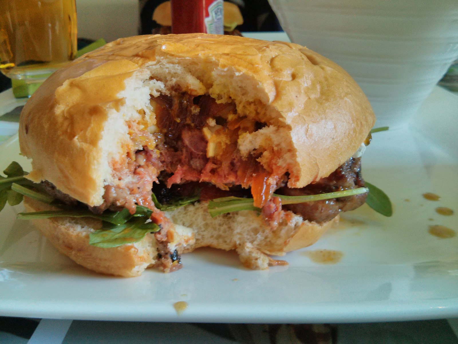 El resto de ingredientes hacen un perfecto acompañamiento, ya sea el bacon, el queso americano o los champiñones en el caso de la Manhattan o la rúcula, el foie o el queso brie en el caso de la francesa, apesar de que ésta última nos la vendan como especial.