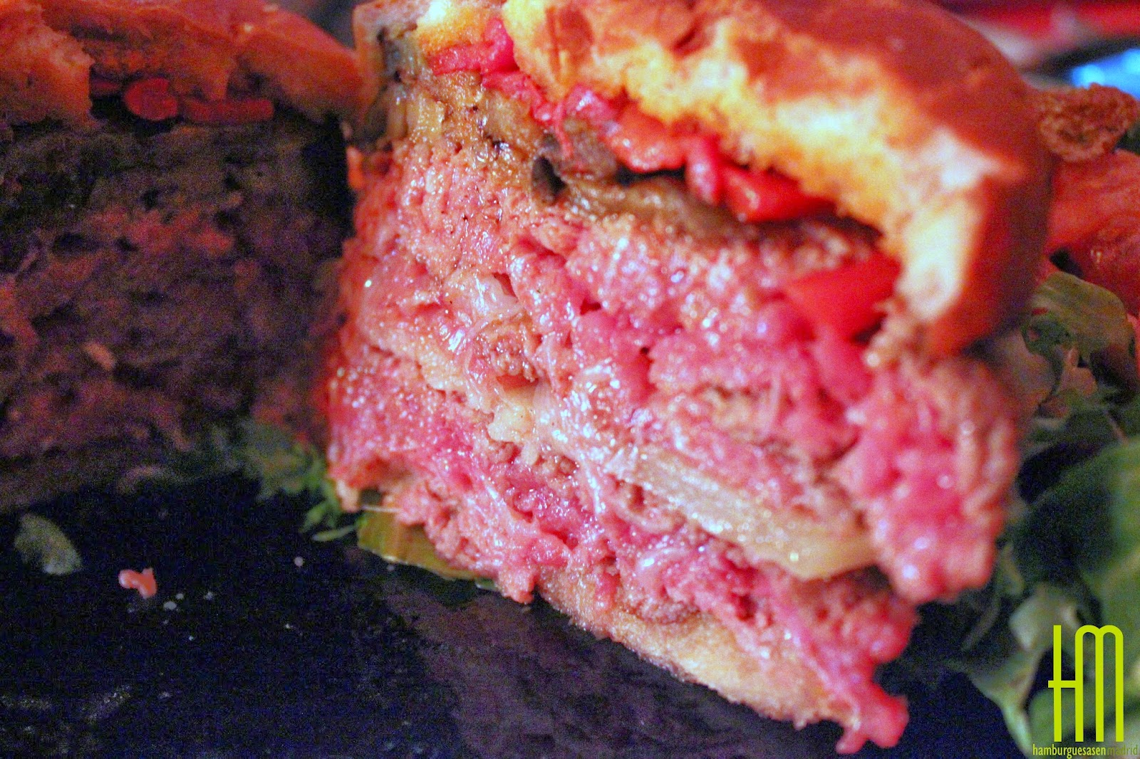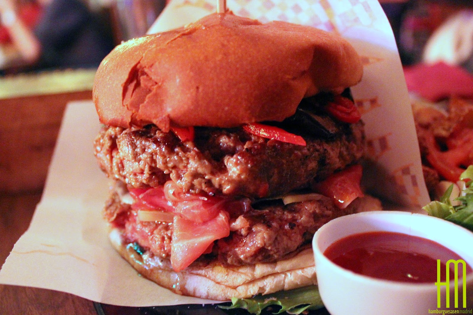¿Qué os ha parecido? Sin duda, al comerla sólo tenemos un calificativo: bomba. El sabor de la carne te recorre todo el cuerpo, mientras que el queso y el jamón hacen da acompañamiento perfecto. Pero como no todo podía ser perfecto, hemos de confesar que tanto los pimientos como la berenjena aportan más bien poco al conjunto de la hamburguesa, ya que todo el sabor se lo llevan los ingredientes citados antes.
