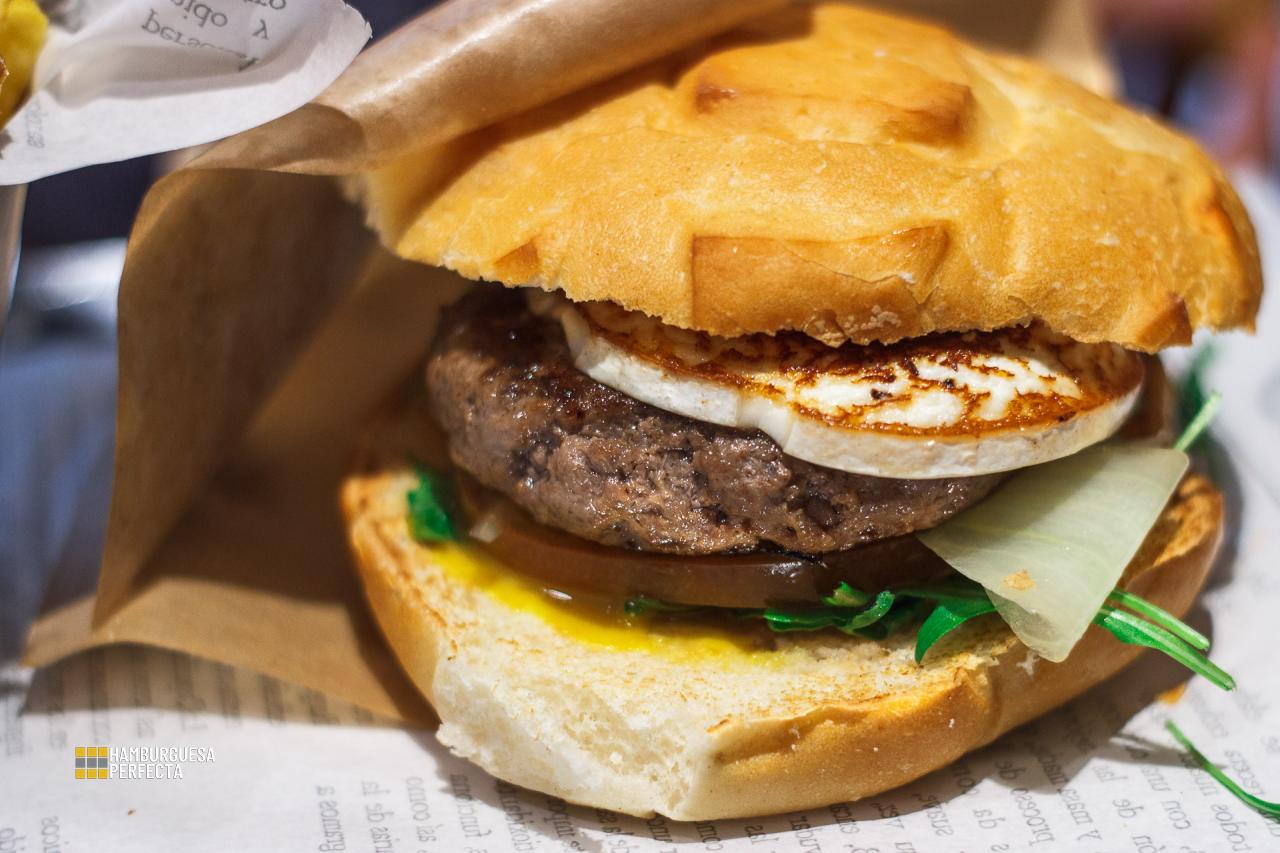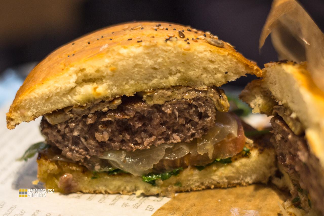 Acto seguido llegaron las hamburguesas, primero una Mountain, con su queso de cabra, muy muy fino, rúcula, tomate, cebolla caramelizada y mostaza de miel. A primera vista, una buena elección y más con una carne de ternera de La Finca, ¿verdad? Pues esto mismo, la carne, es el principal fallo, ya que, como nos ha pasado en anteriores visitas, no sabe a nada. Empezamos a dudar mucho sobre la calidad que abandera este productor carnívoro, ya que a cada bocado nos quedaba más claro que de premium esto no tenía nada.