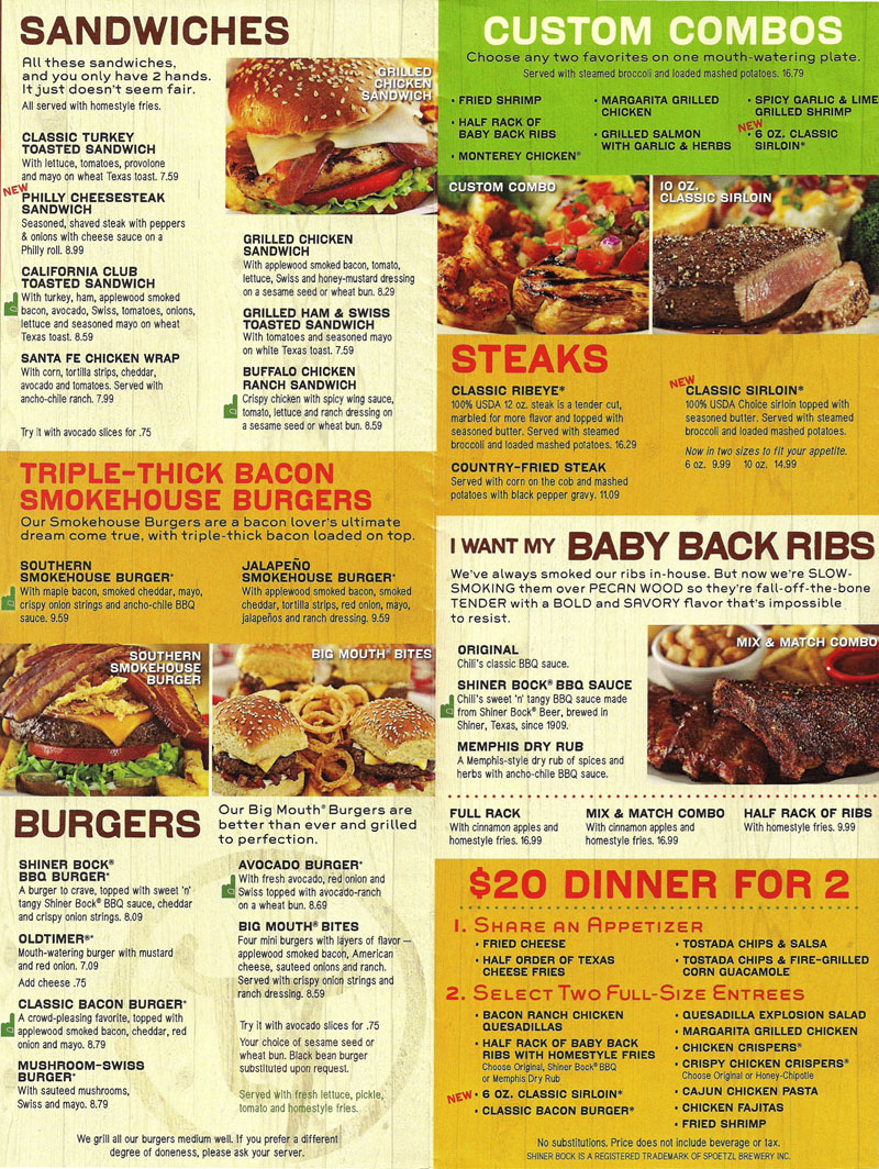 Lo primero de todo, nos tenemos que excusar, ya que no contamos con fotografías propias, ya que ha pasado algún tiempo desde nuestra última visita a Chili's, así que aportaremos material propio de su web.