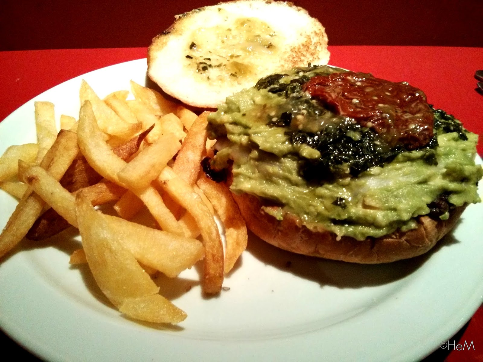 La otra víctima fue la hamburguesa Aguacatex, la cual adolece de los mismos puntos débiles que su predecesora en esta reseña: carne escasa e insípida, con la salvedad de que a quien la probó sí que le gusta la carne muy hecha, por lo que el "problema" del punto aquí no existió. Sin duda, lo mejor, además de lo comentado arriba, es el tomate seco, de potente sabor, aunque el lado negativo lo aporta un, también excesivo uso del aceite de albahaca, lo que hace que el panecillo quede bastante grasoso.
