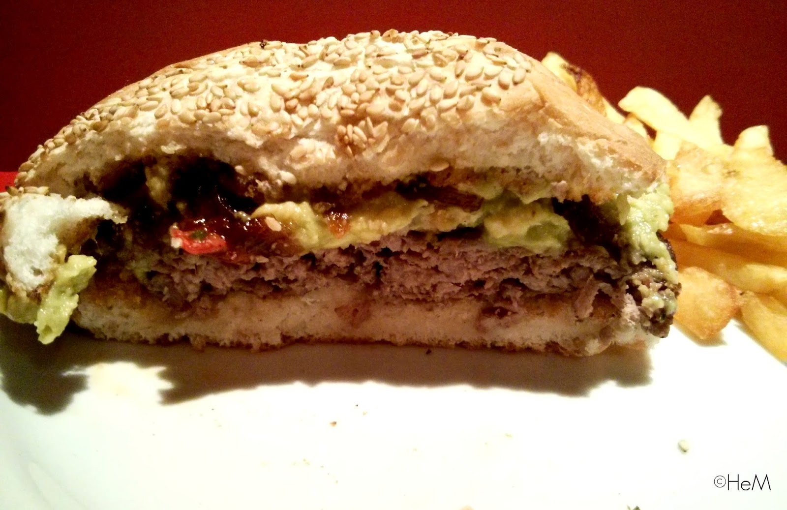 Tras este delicioso inicio, llega el turno de las hamburguesas.La hamburguesa que precede a estas líneas es la denominada Ayelén y reza en la carta que es picante, aunque no pudimos encontrarle esa cualidad por ningún sitio, de hecho, tampoco pudimos saborear el prometido chutney de mango, posiblemente debido al exceso de aguacate, que prácticamente formaba la hamburguesa por completo.