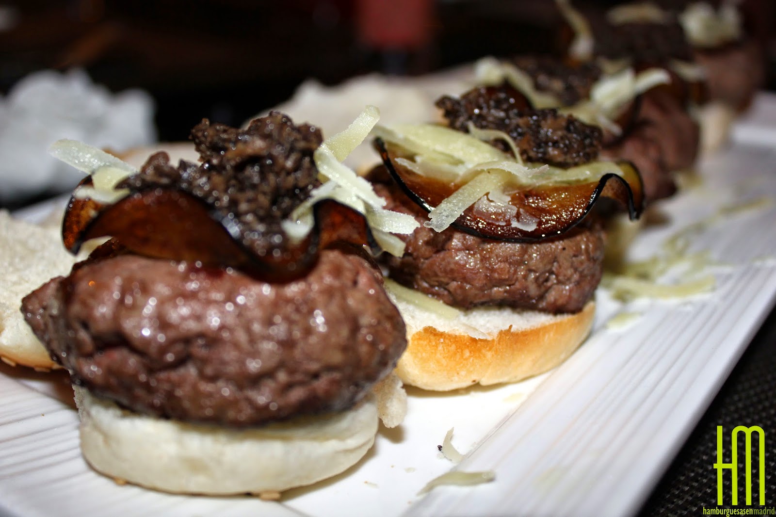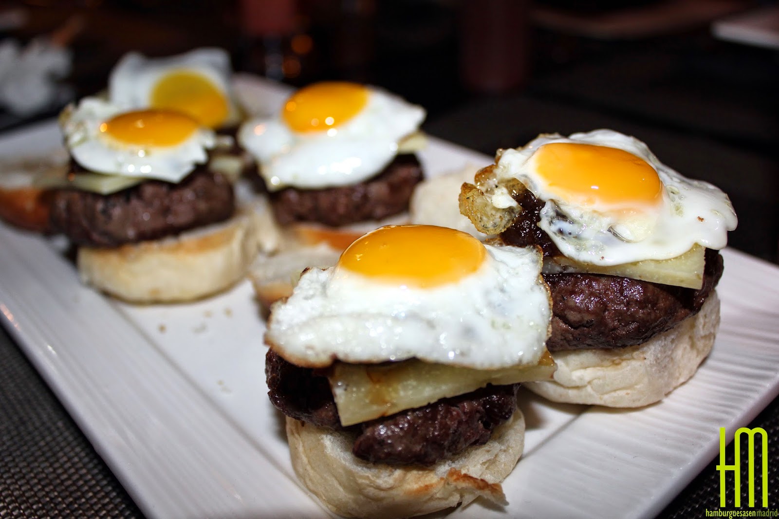Tras mucho pensar en cómo presentar todas las hamburguesas, hemos decidido que las fotos sean las que hablen por sí mismas y os advertimos que hablan muy, pero que muy bien. La única aclaración que debemos hacer antes es que, aunque se trate de mini hamburguesas, estamos hablando de carne de 50 gr., algo casi excepcional, por lo que, con un plato de 4 mini burgers, estaremos comiendo un pedazo de carne de 200 gr., lo cual no está nada mal. Tras esta nota del editor, empezamos.