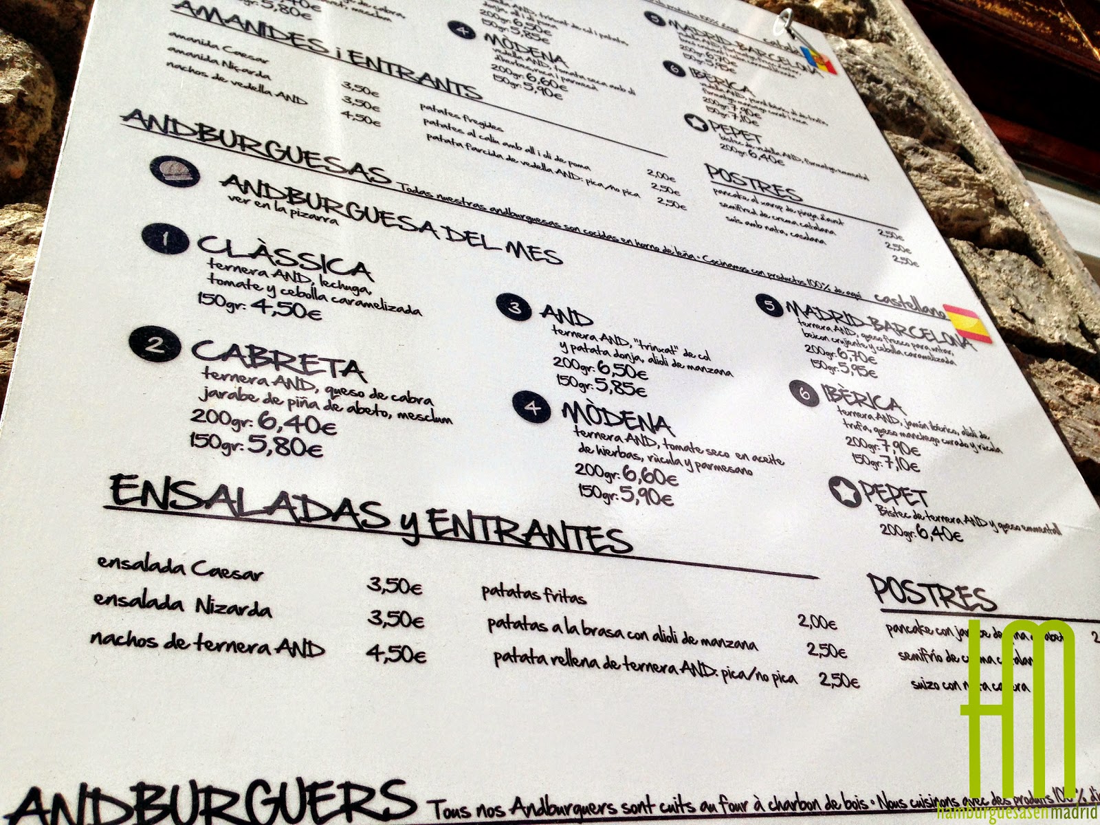 La carta de hamburguesas del local de Escaldes.Para innovar, esta vez nos tiramos hacia unos Nachos de ternera AND (4,50€) que nos llamaban con una fuerza poderosa tras la recomendación de la chica del local. La verdad es que, a pesar de venir algo chamuscados, nos gustaron mucho y nos parecieron que venían una ración más que buena para su precio.Pasando a lo que realmente nos importa, la carnaza de estas hamburguesas. Nos repetimos en que es excepcional, espectacular y magnífica pero no podemos decir lo mismo sobre la forma de cocinarlas. No preguntan el punto en el que quieres tu hamburguesa y no veníamos con miedo porque en nuestras visitas anteriores nos la habían servido siempre en su justa medida para disfrutar al máximo de su jugosidad. Sin embargo, en esta ocasión no tuvimos tanta suerte y hubo casos en los que la carne estaba más bien pasadísima, como podéis notar en las fotos.