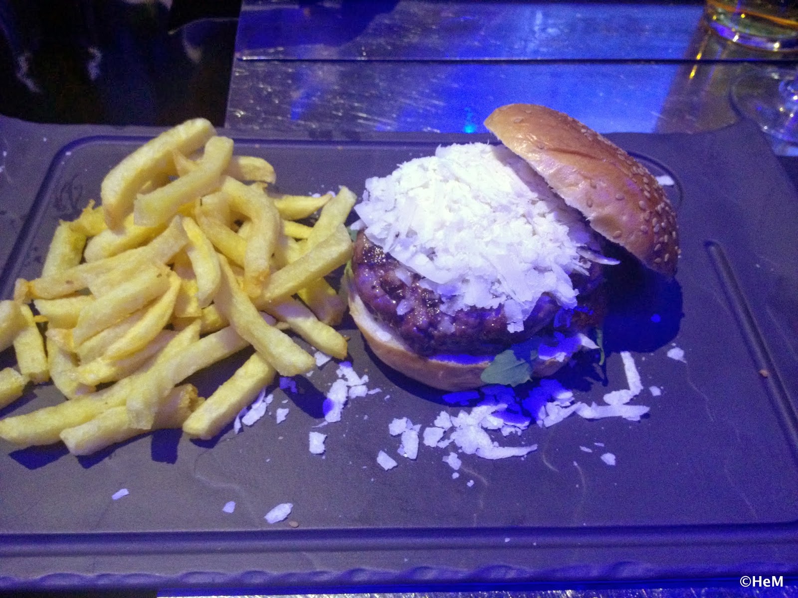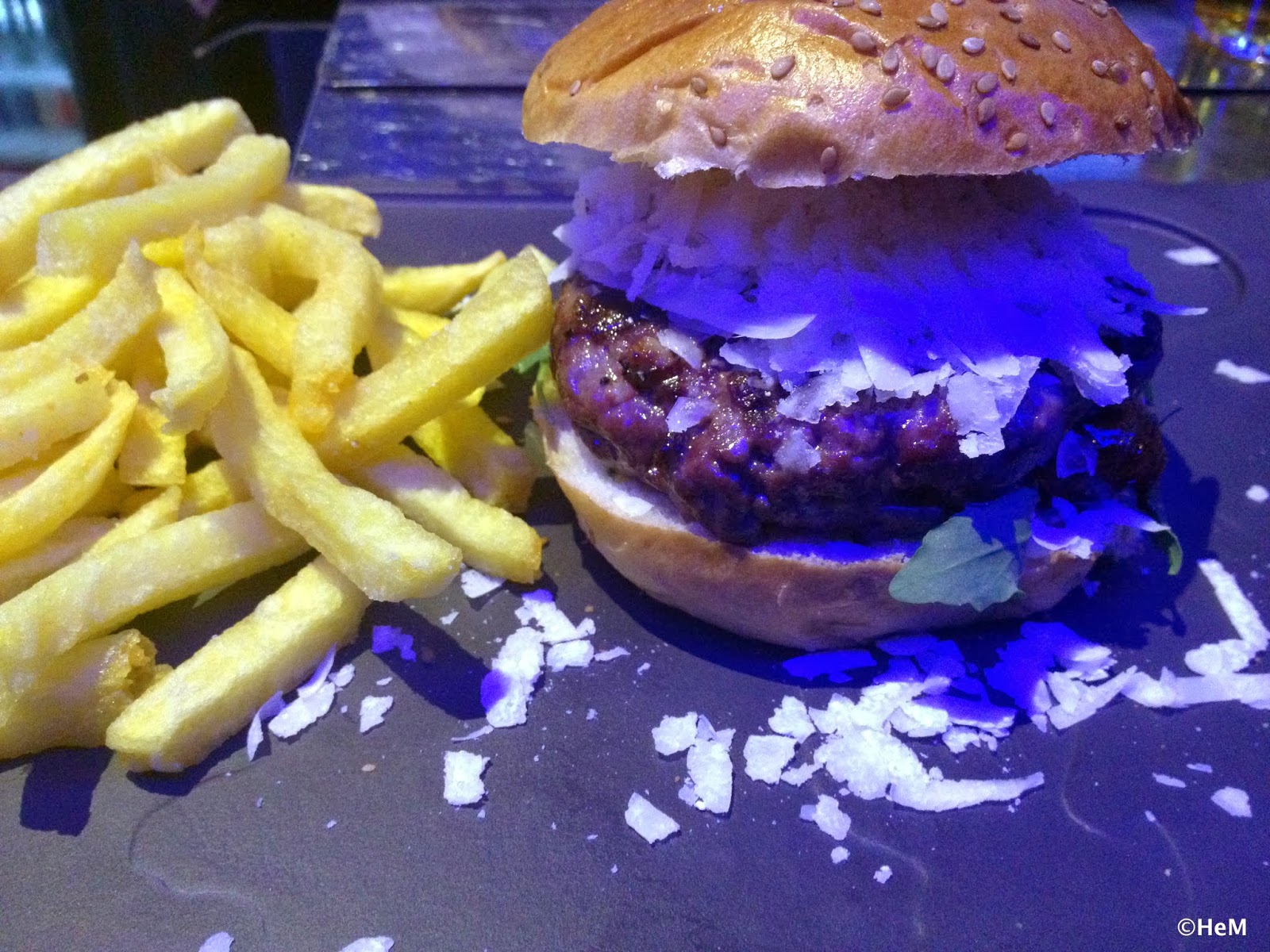 Nuevamente, el ambiente nos parece un gran acierto, alejándose de las decoraciones estridentes típicas de las hamburgueserías tradicionales y creando una atmósfera que da pie a alargar la noche a base de copas o incluso a sesiones de eventos deportivos que luego se traducen en una buena cena. Bien es cierto que para algunos el ambiente puede ser demasiado estilo "pub" con luces azules y espejos, pero a nosotros nos pareció incluso acogedor a pesar de estar casi vacío.