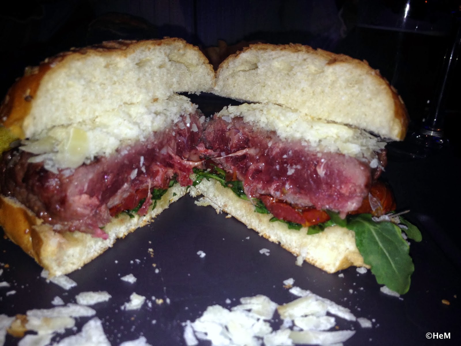 El resto de los ingredientes de la hamburguesa hacen su papel de maravilla y tanto la Real (con cebolla caramelizada, queso brie y tomate raf) como la Parma (con queso parmesano, rúcula y tomate seco italiano) estaban estupendas.